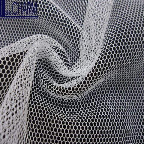 ผ้าโพลีเอสเตอร์100% ถักลายหกเหลี่ยม27gsm 40D LCSH506สิ่งทอสำหรับงานแต่งงานชุดบ้าน